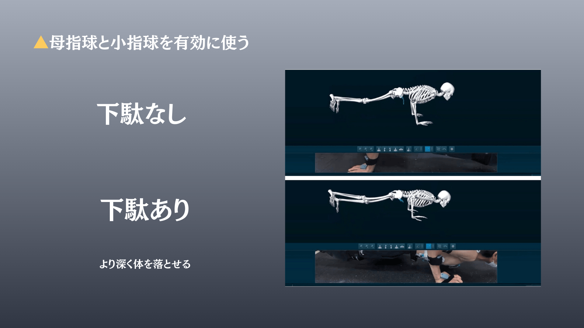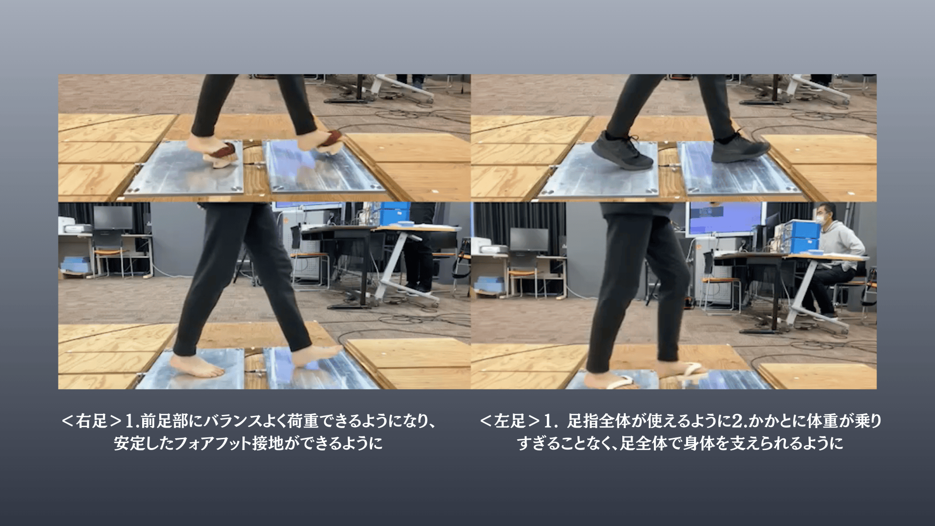 靴では着地時に接地する面積が広いため、個々のクセが出やすく、正確に接地をくりかえすことが困難です。