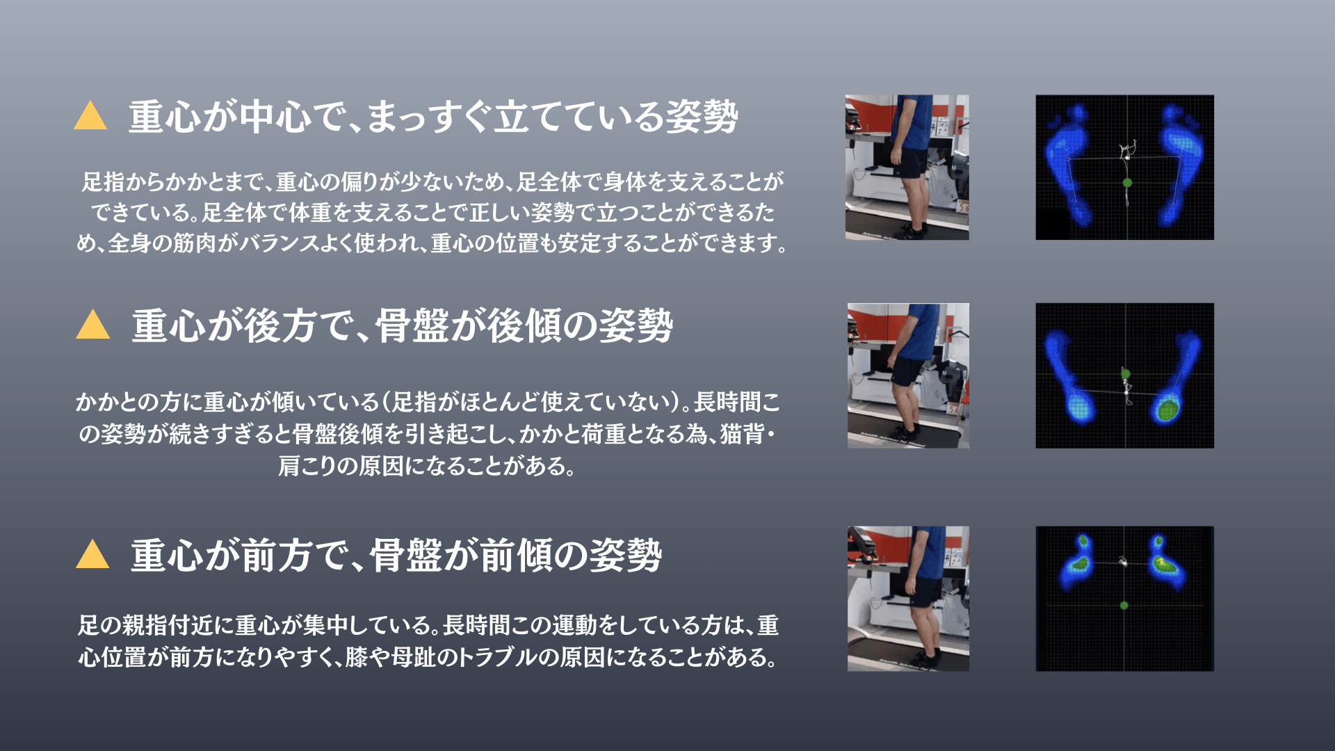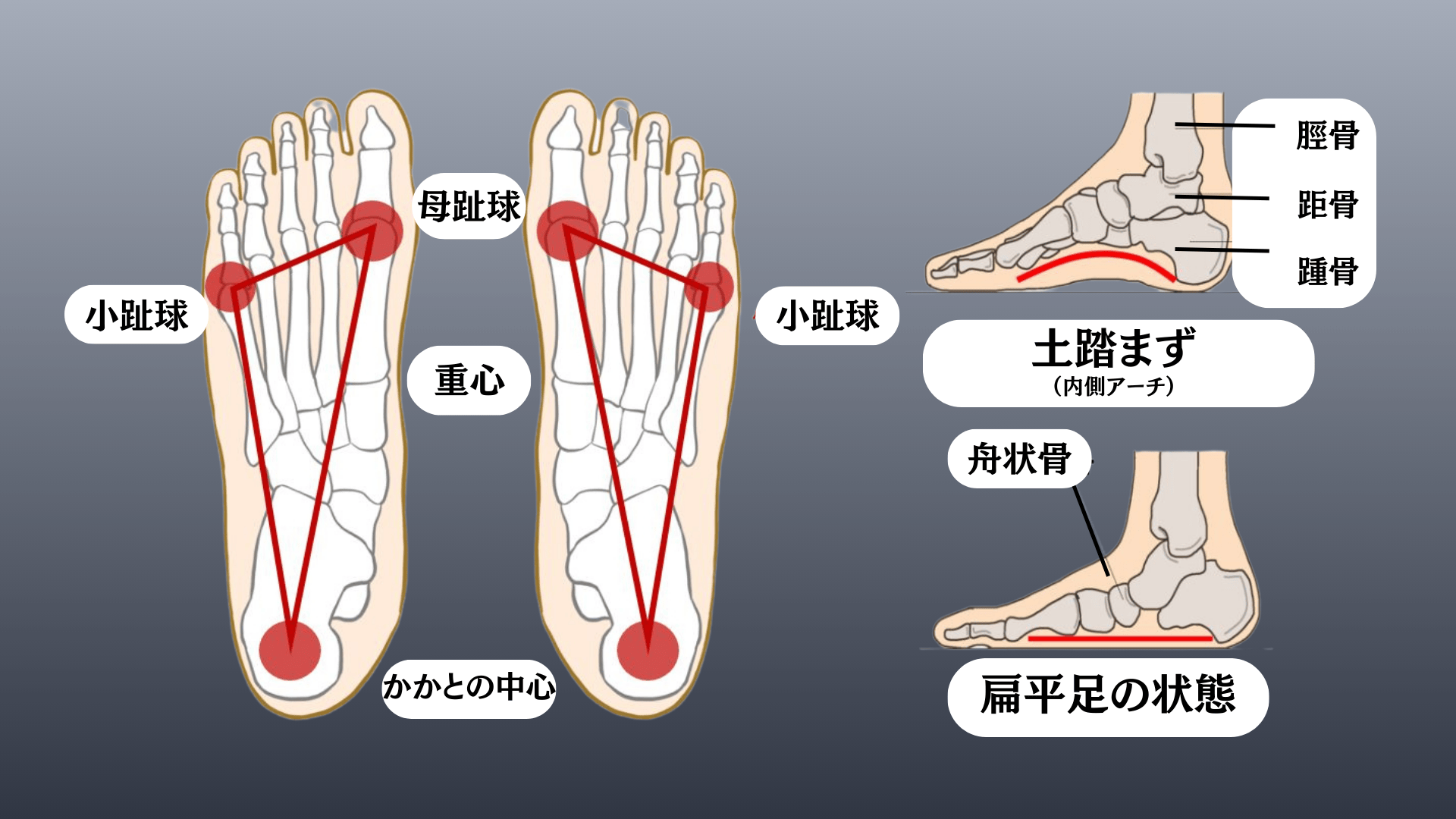 この3点で地面に安定して接地することで、足のアーチが適切に働く・荷重が均等に分散される・姿勢・歩行やスポーツの動作の安定性が高まるといったメリットがあります。