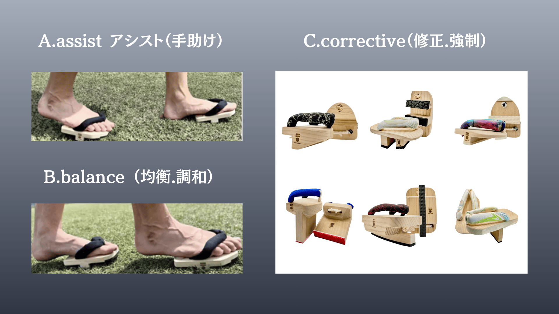 1.Assist アシスト「下駄は動きを助け、スムーズな歩行を可能に」
